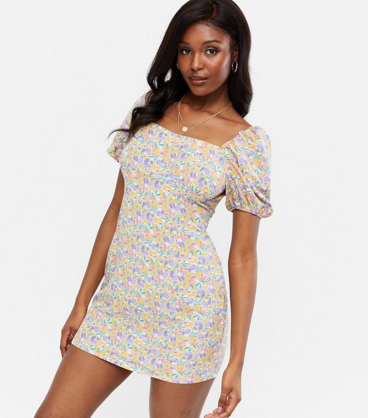 Pink Vanilla Multicoloured Floral Puff Sleeve Mini Dress New Look